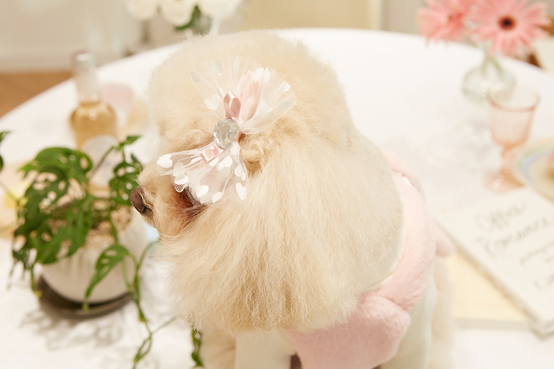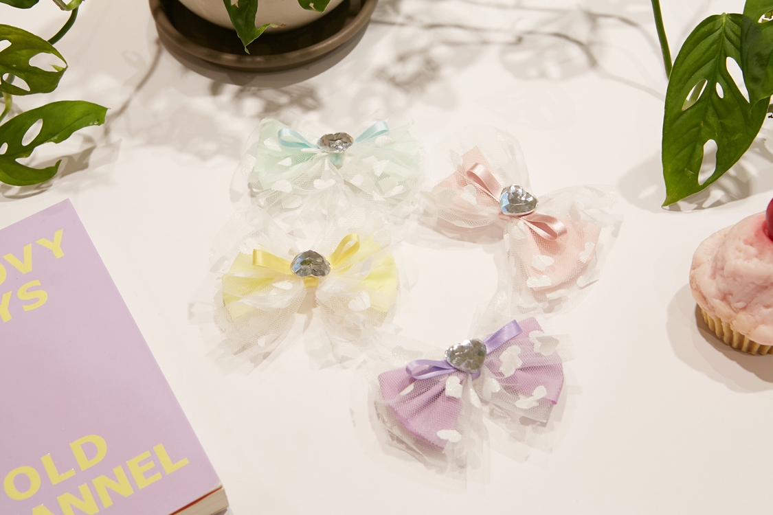 펄감이 있는 하트 망사와 하트큐빅이