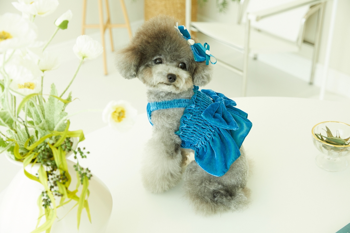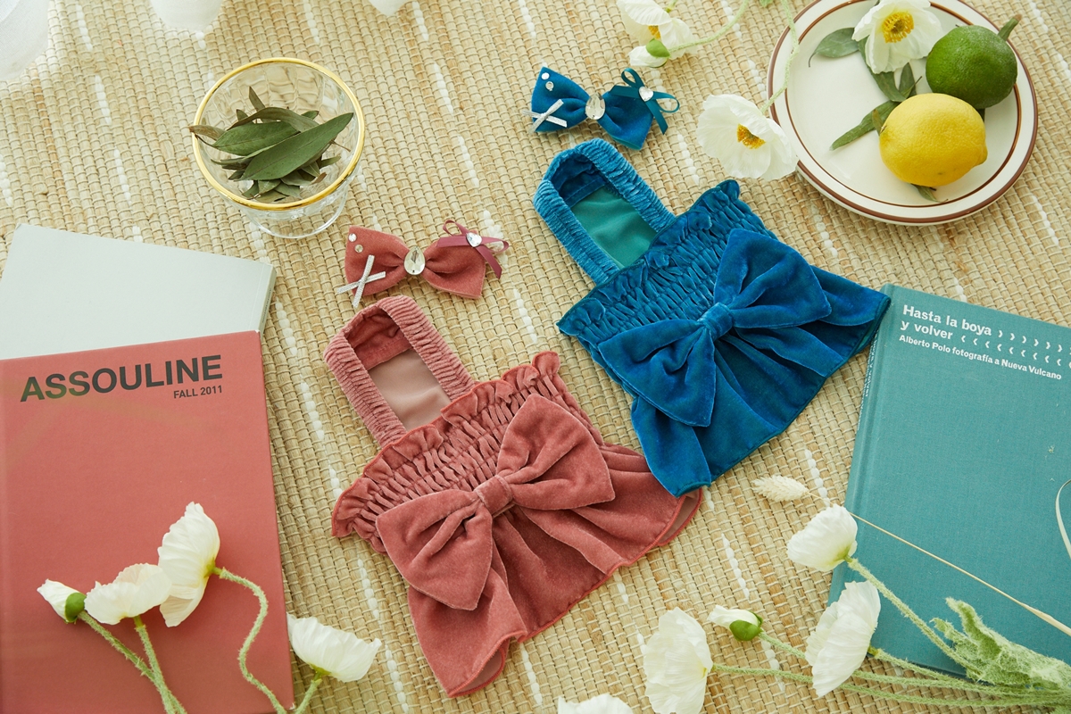 부드러운 벨벳원단에 깜찍한 빅리본이 달린 스모킹 세미크롭입니다