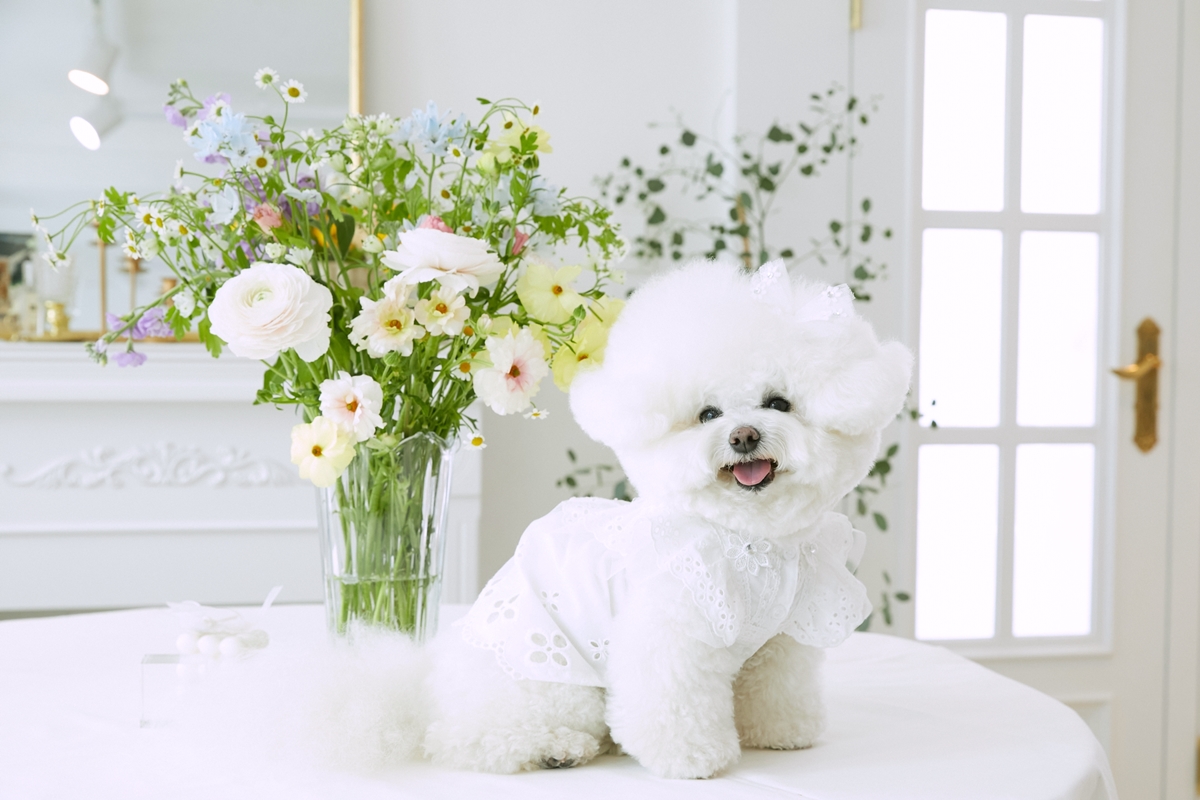 봄꽃을 닮은 꽃펀칭레이스가 사랑스러운 드레스