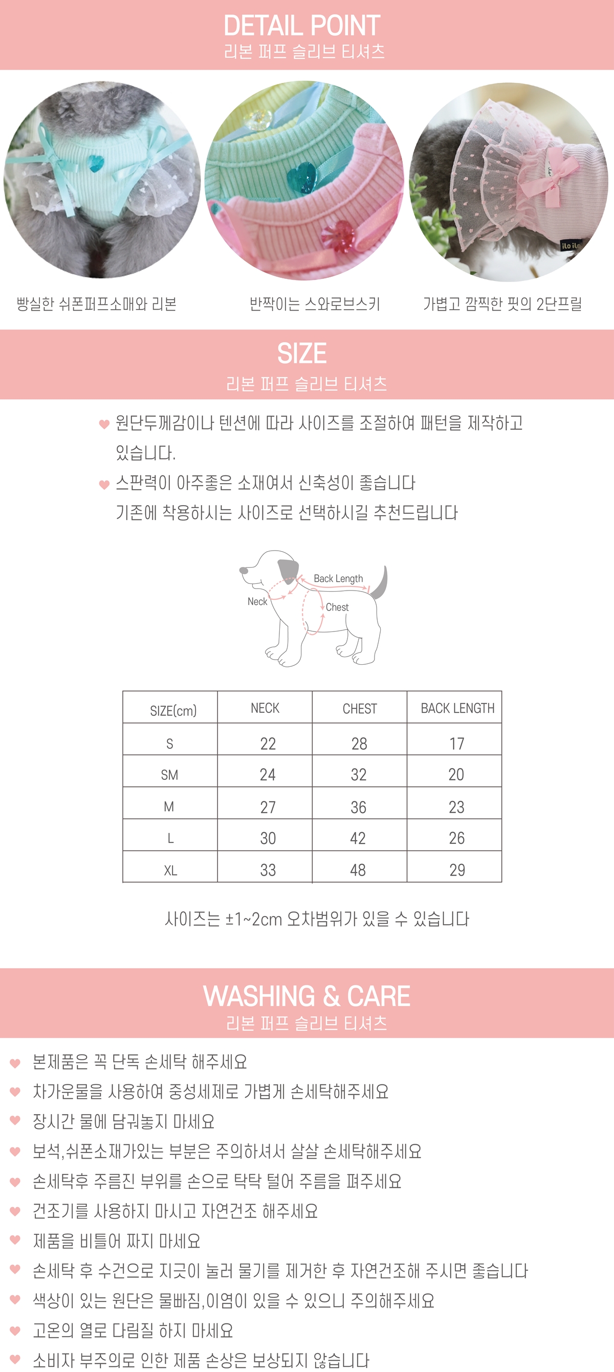 빵실빵실한 쉬폰돗트 퍼프소매와 귀여운 리본이 포인트