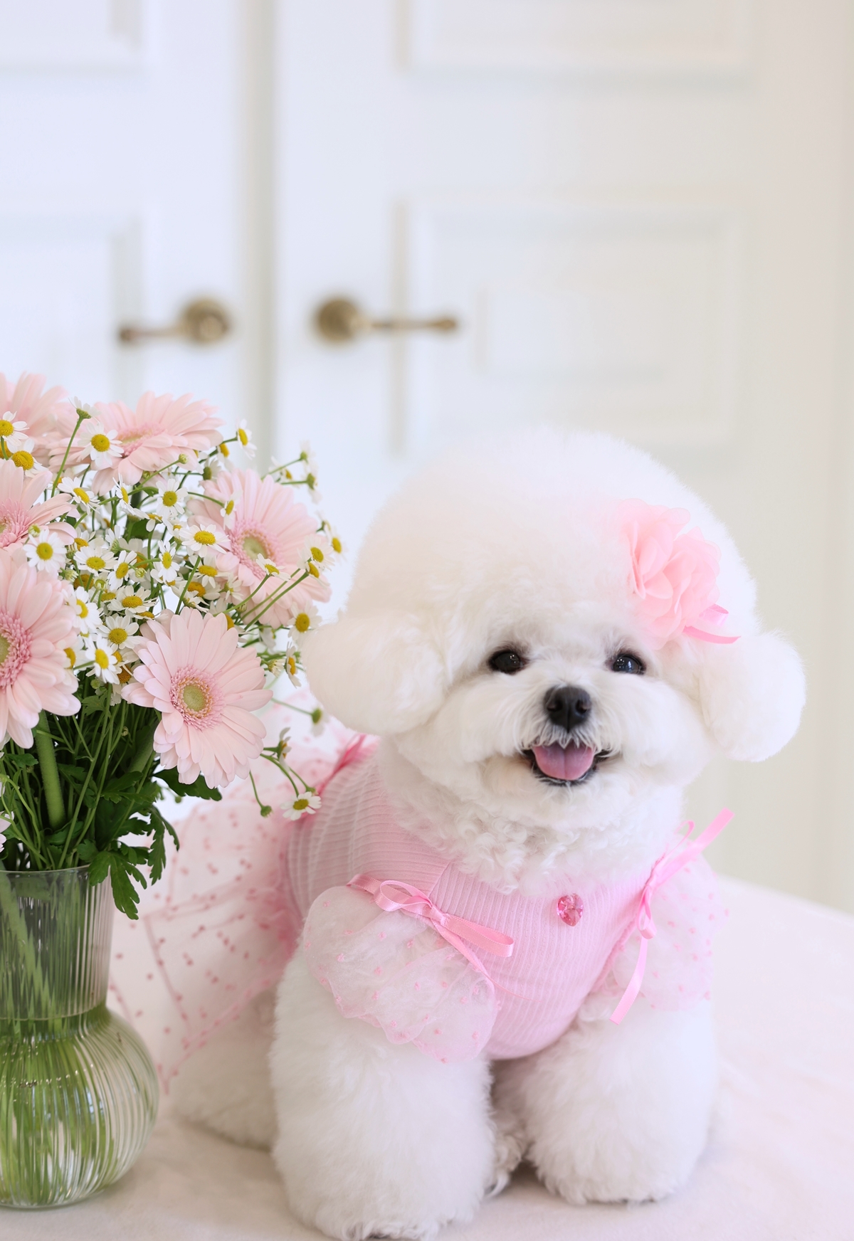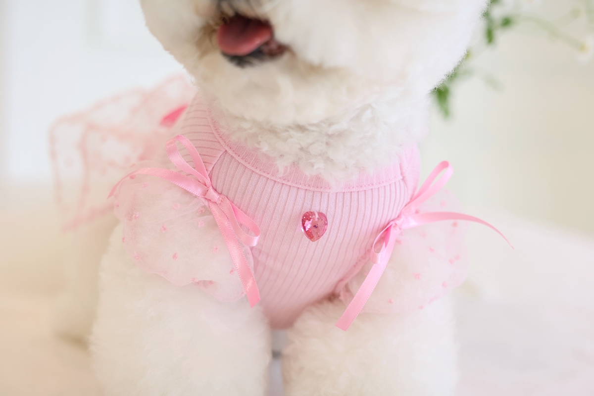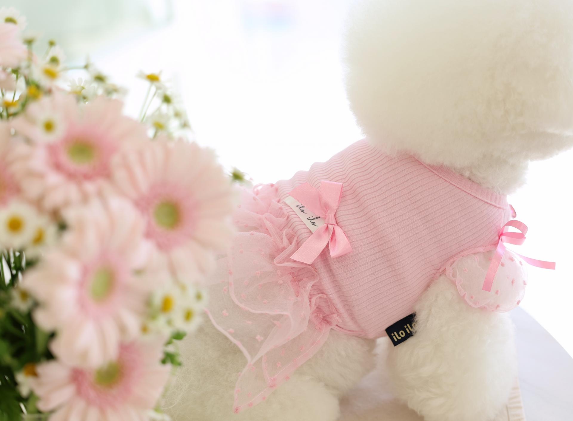 빵실빵실한 쉬폰돗트 퍼프소매와 귀여운 리본이 포인트