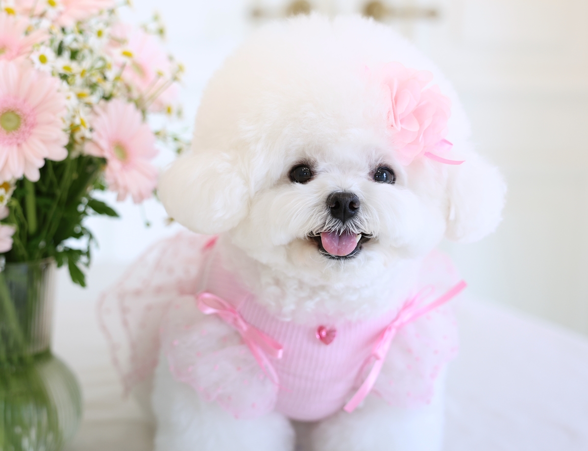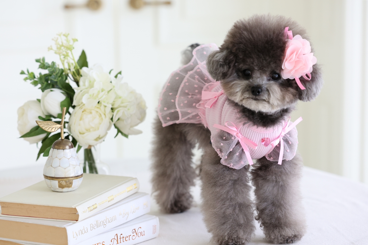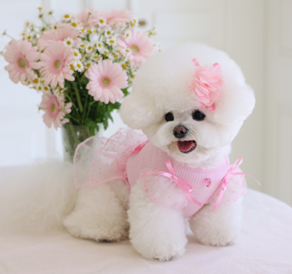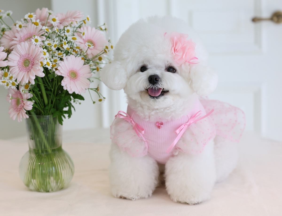 빵실빵실한 쉬폰돗트 퍼프소매와 귀여운 리본이 포인트
