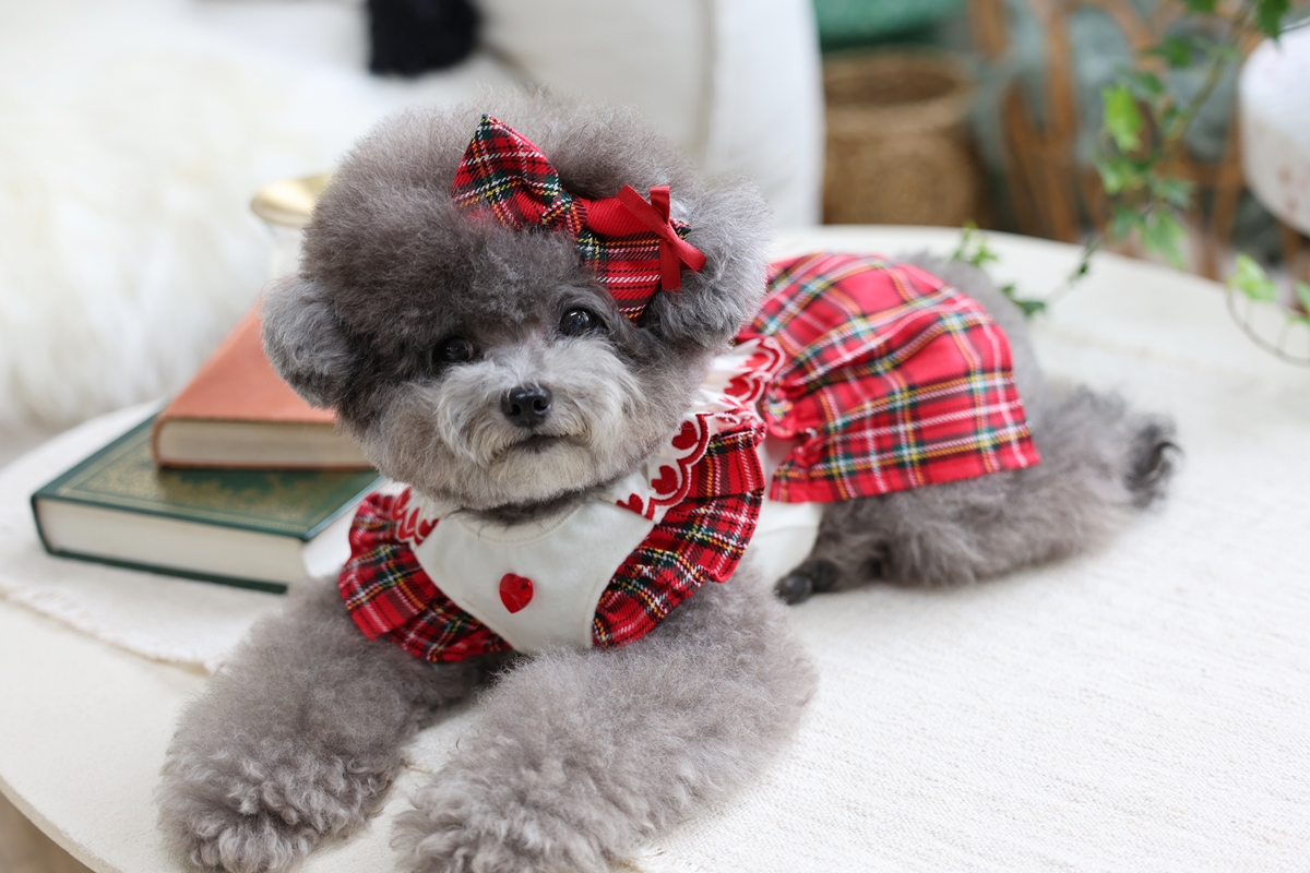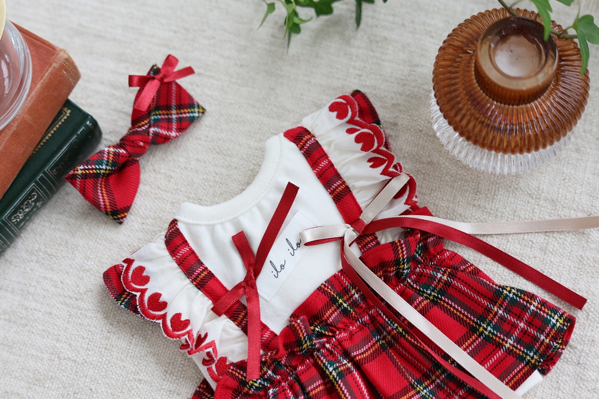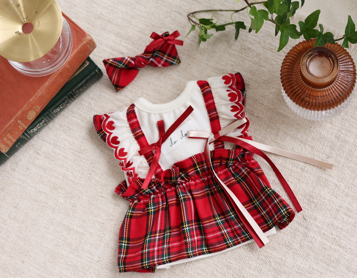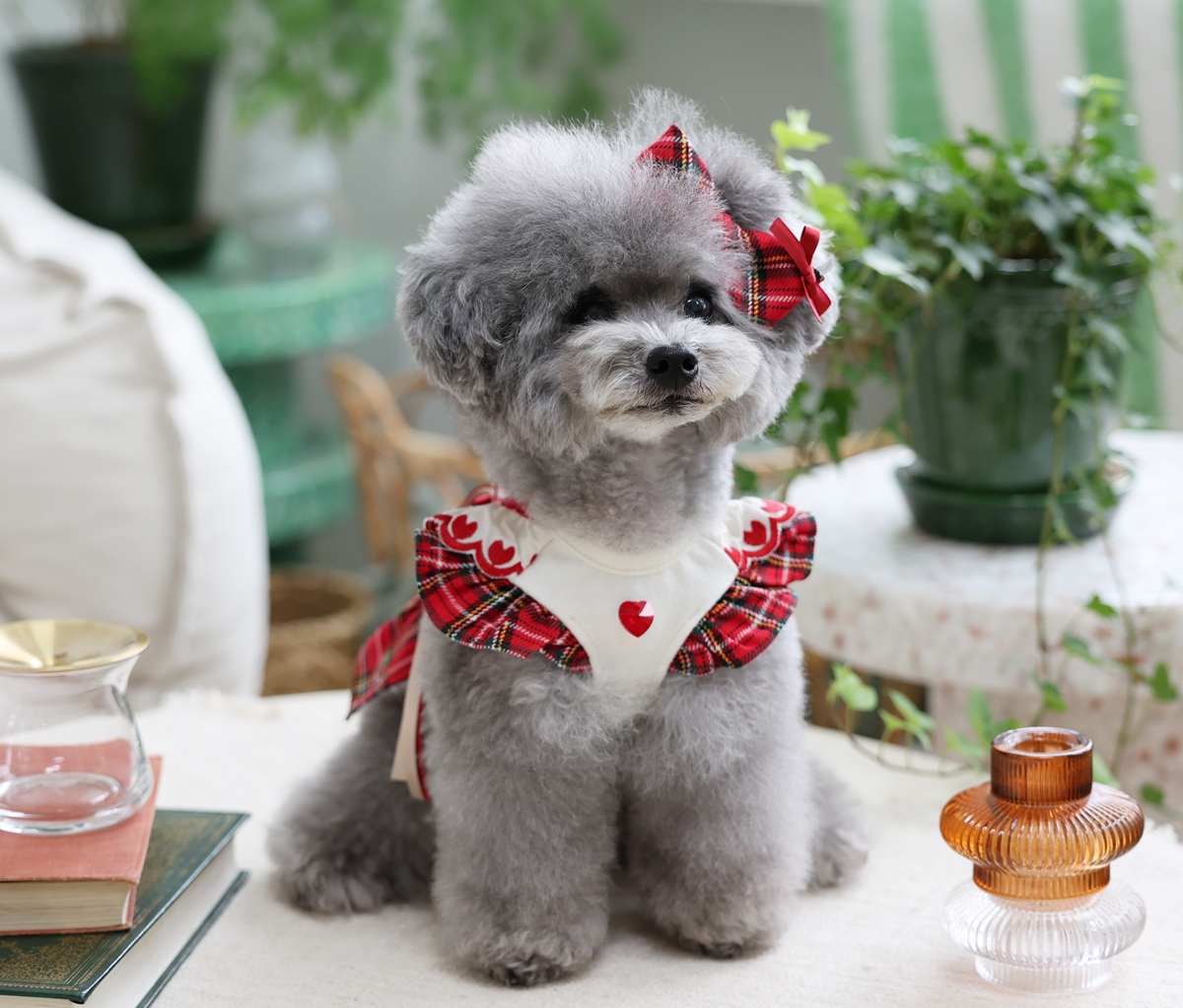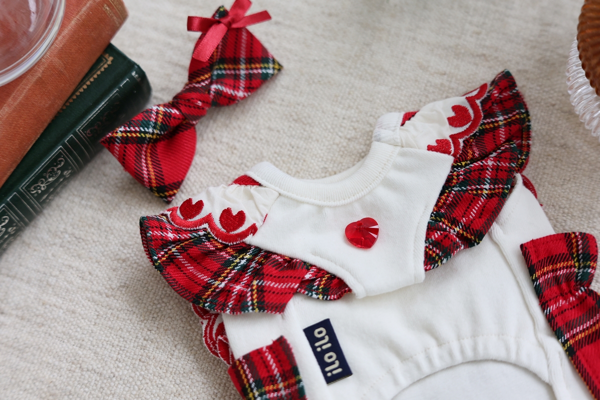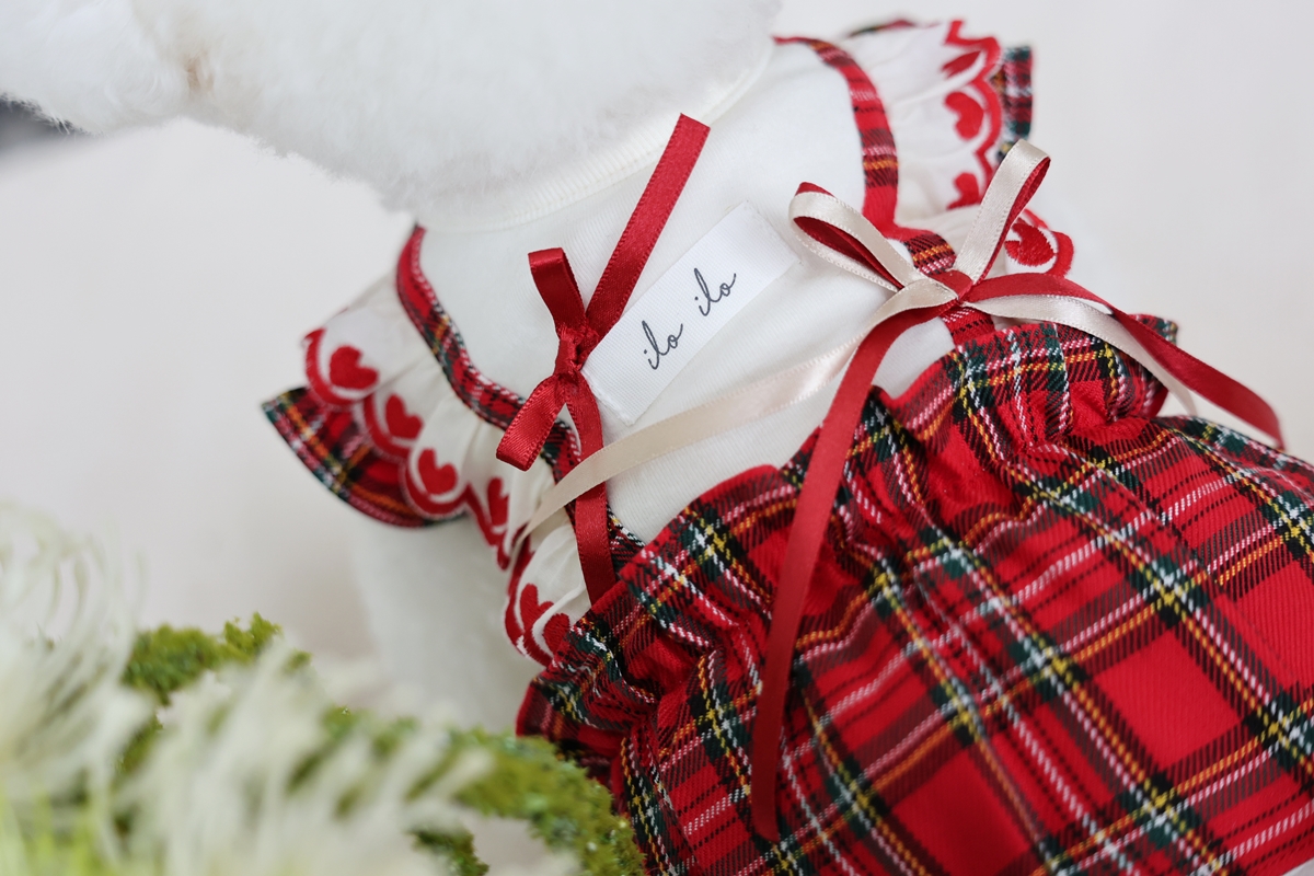 레드와 베이지 리본과 하트자수프릴로 귀여운 포인트