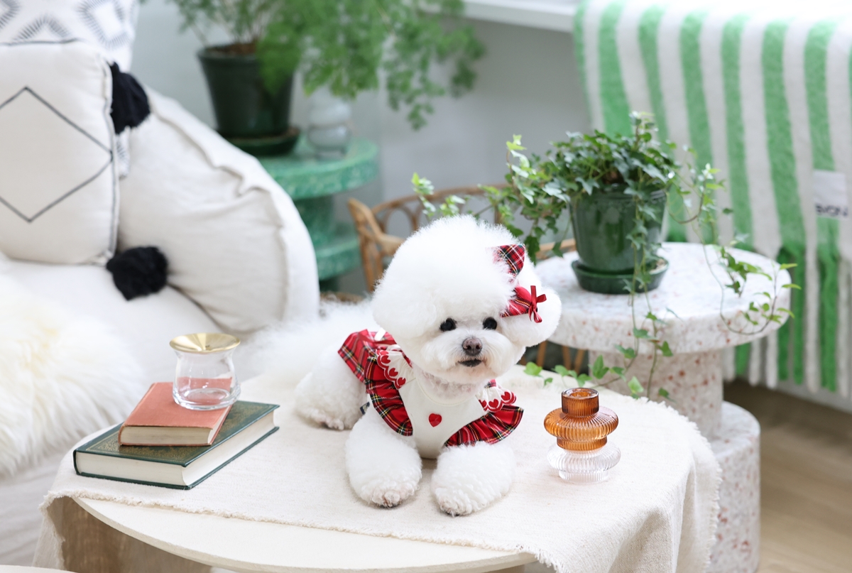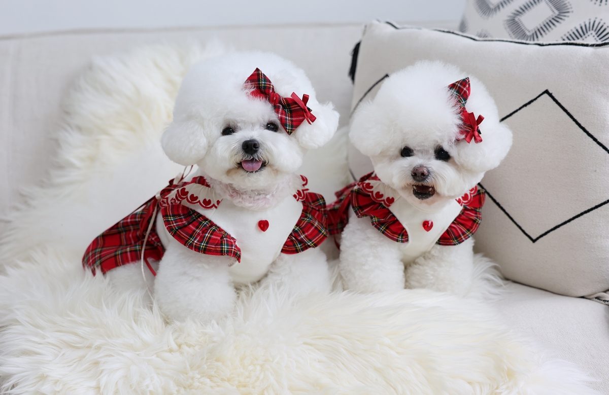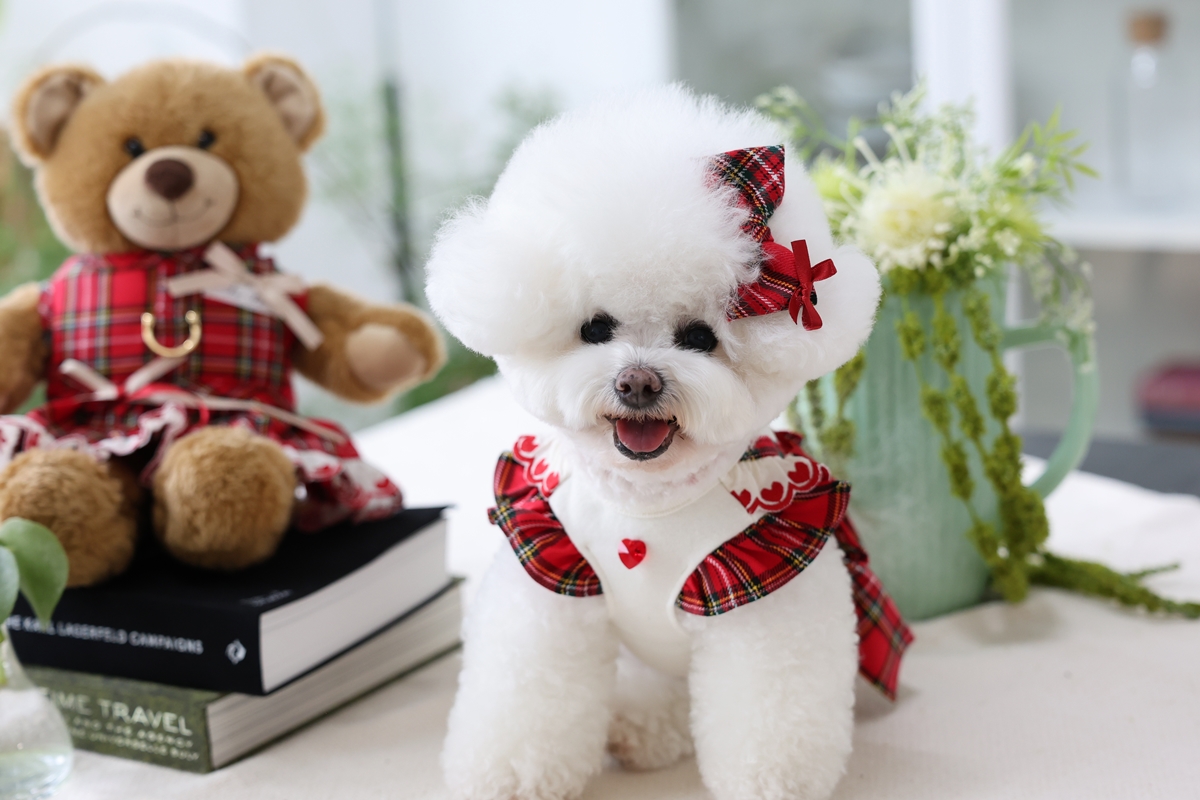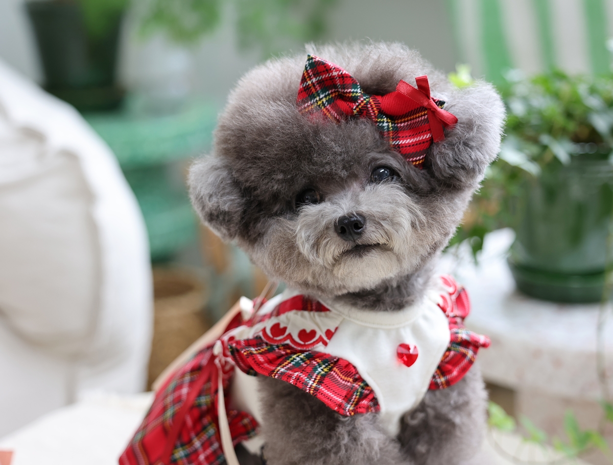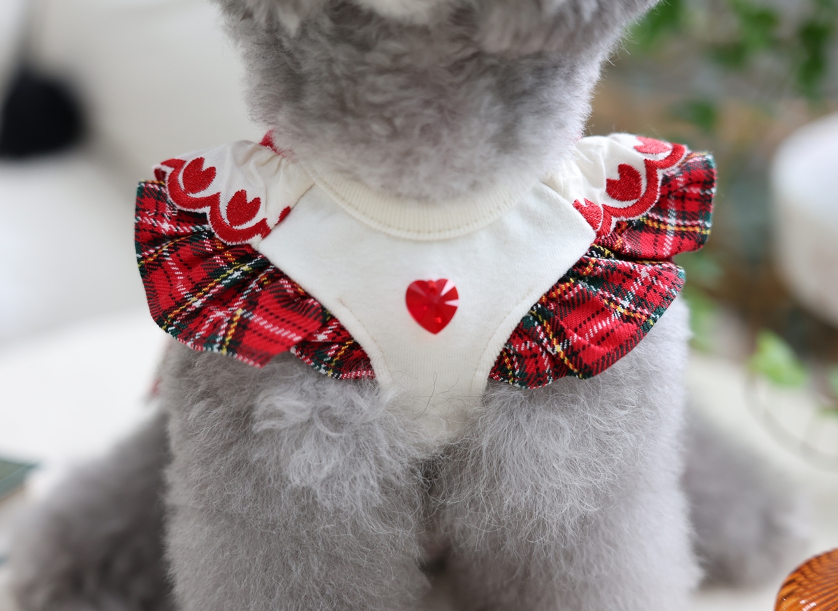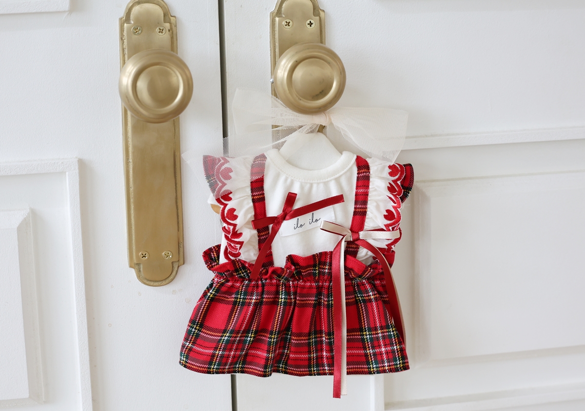 레드와 베이지 리본과 하트자수프릴로 귀여운 포인트