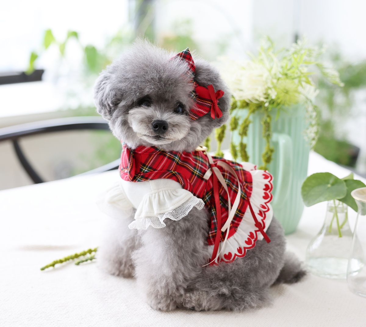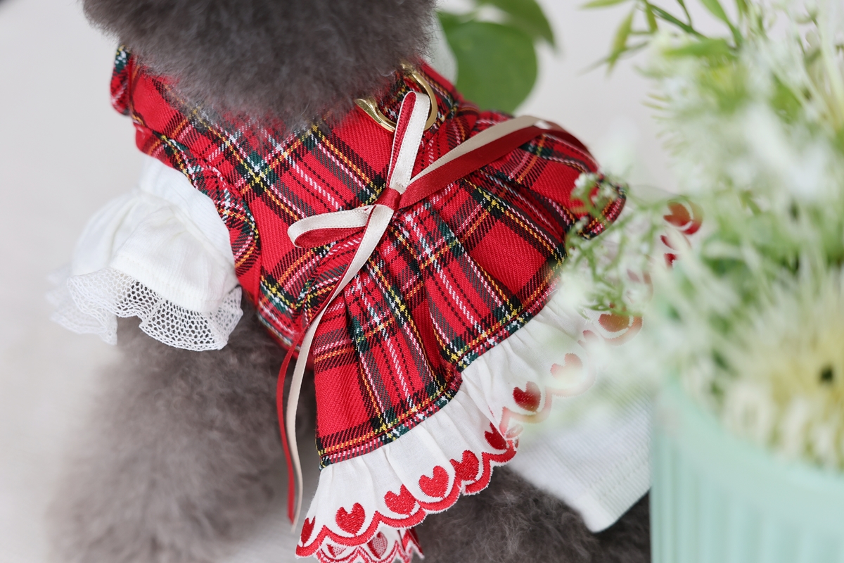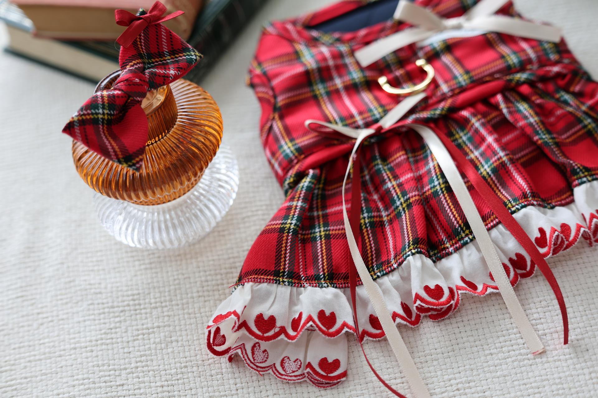 레드와베이지 리본과 하트자수프릴로 러블리한 포인트