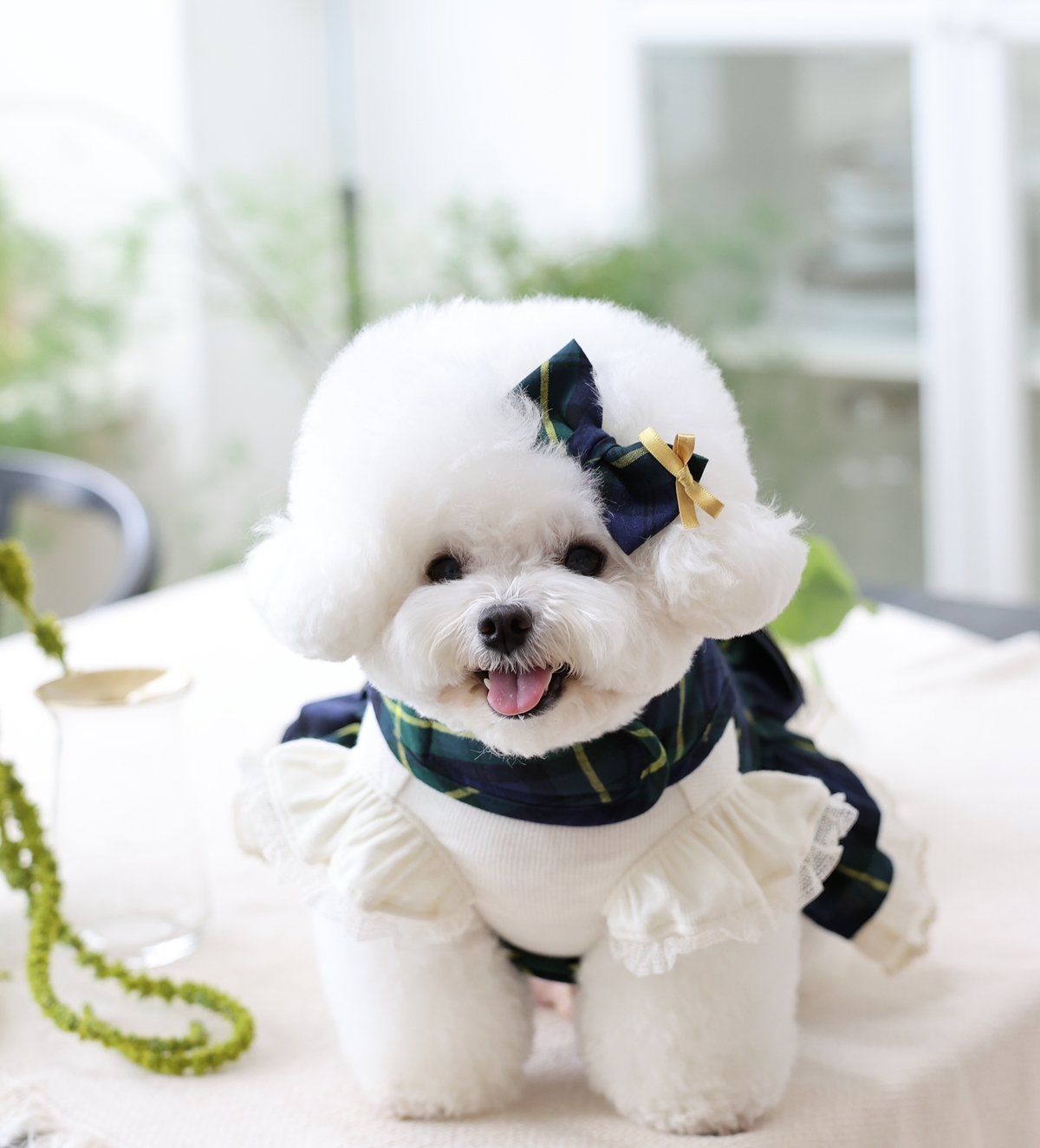체크이중프릴과 레이스로 봉긋하고 깜찍한 핏