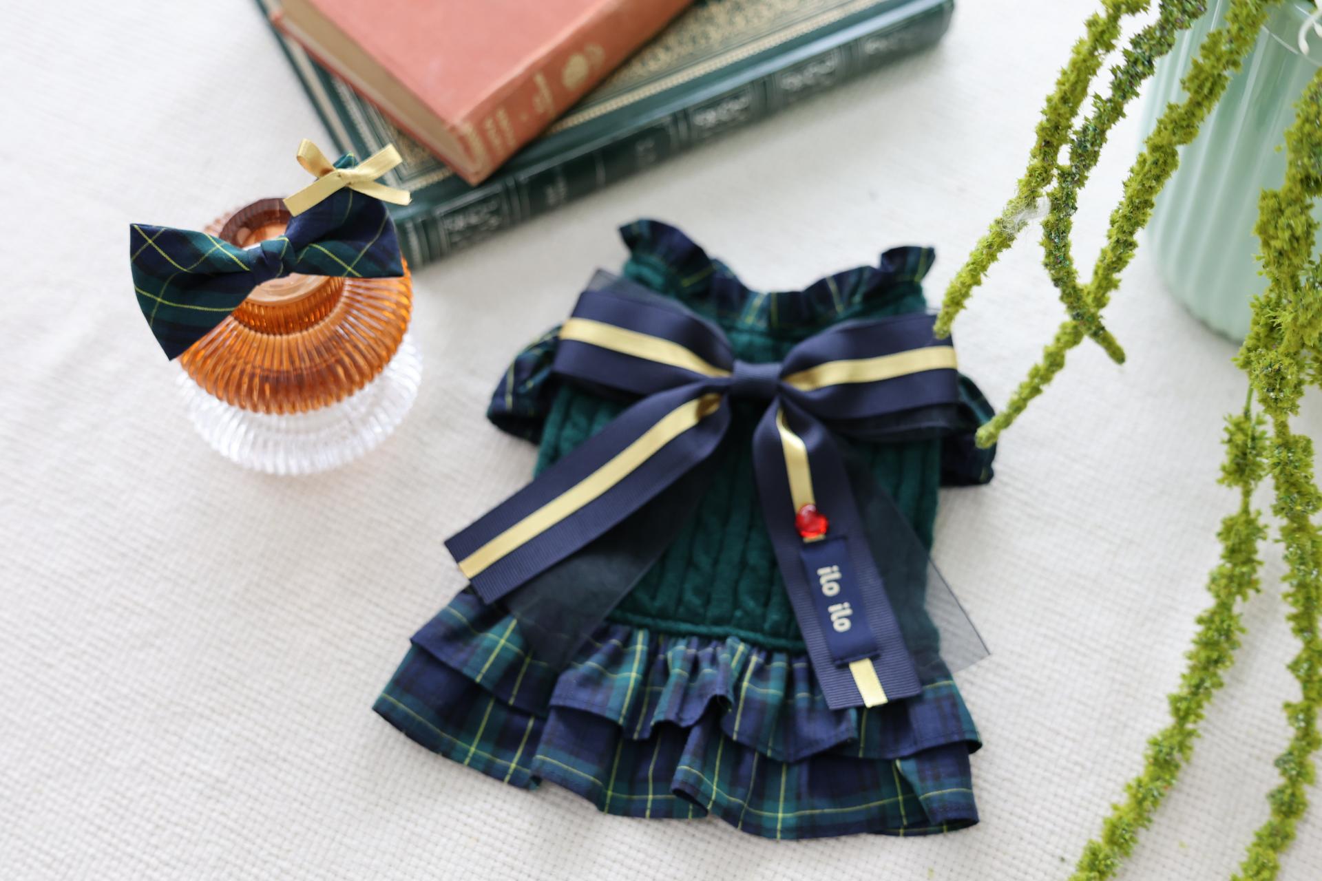 리본 플레드 드레스와 셋트로 디자인한 헤어리본